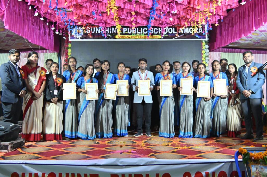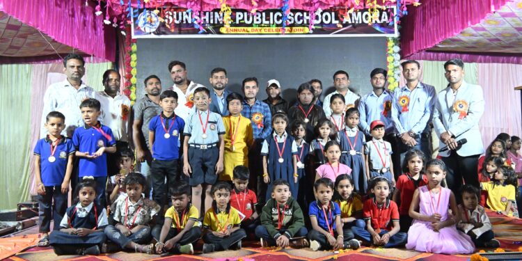 अमोरा, 11 फरवरी 2026: सनसाईन पब्लिक स्कूल अमोरा में वार्षिकोत्सव कार्यक्रम बड़े ही हर्षोल्लास और उत्साह के साथ आयोजित किया गया। कार्यक्रम का शुभारंभ मुख्य अतिथि याकुब कुमार (सरपंच, ग्राम पंचायत अमोरा), उप सरपंच सकुन पटेल (विजय पटेल), तथा ग्राम के अन्य पंच और सामाजिक कार्यकर्ता मंजू सोनी ने माँ सरस्वती के छायाचित्र पर माल्यार्पण और दीप प्रज्ज्वलन करके किया।