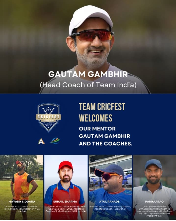 गौतम गंभीर इस कार्यक्रम के दौरान छात्रों से बातचीत करेंगे और उन्हें क्रिकेट की बारीकियों, नेतृत्व और आत्मविश्वास के गुर सिखाएंगे। इसके अलावा, वह CricFest 2025 के लिए एक विशेष जर्सी का अनावरण भी करेंगे।